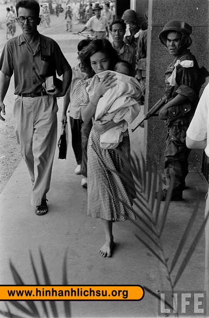Người dân đang theo dõi cuộc giao chiến giữa Sài Gòn, ngày 28/4/1955.