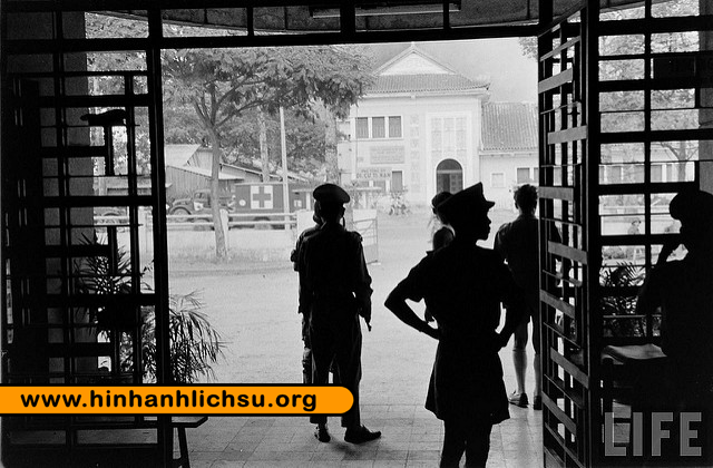 Binh lính và Cảnh sát Quốc Gia Việt Nam đang phục kích quân Bình Xuyên trong một căn nhà trên đường Trần Hưng Đạo.
